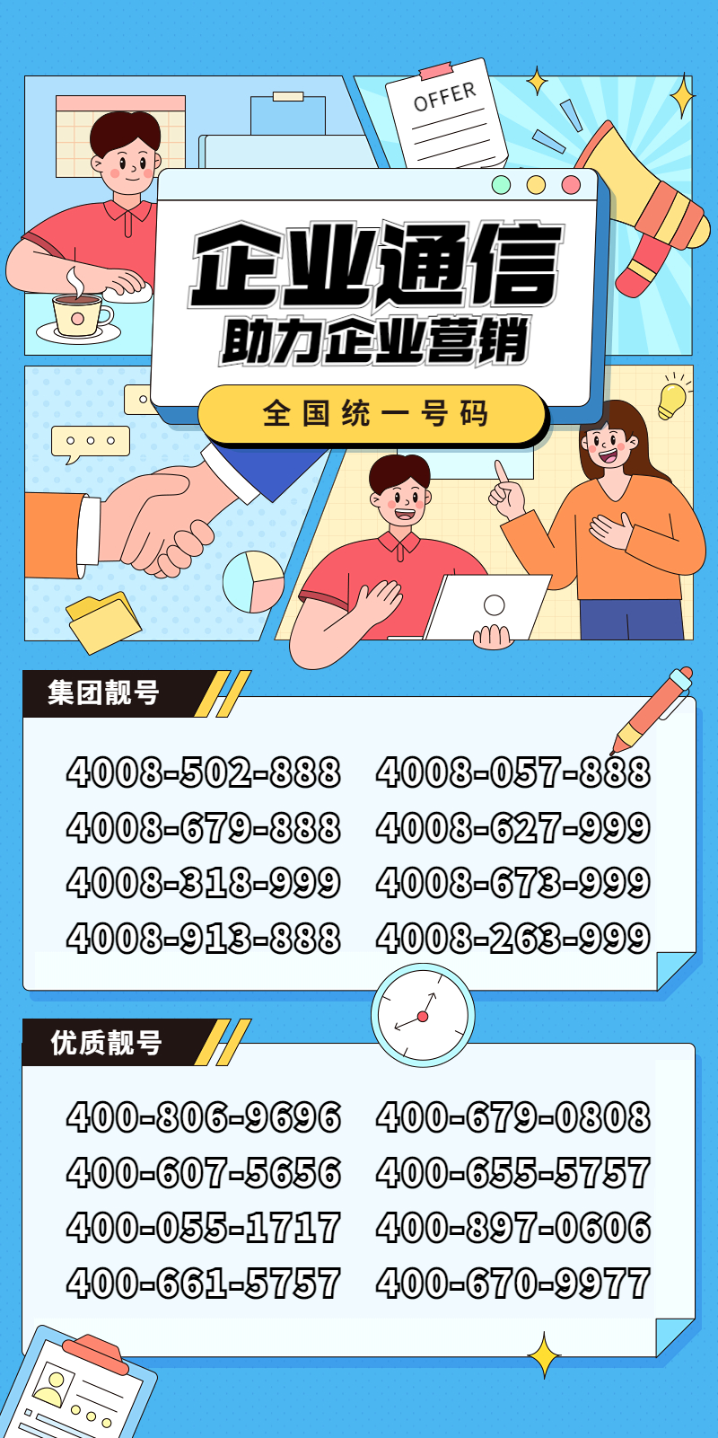 以上内容由公众号【登烈通400业务中心】进行提供!百万号码任意选号,办理迅速,1~3个工作日即可开通使用!专属服务对接群,售后服务有保障!