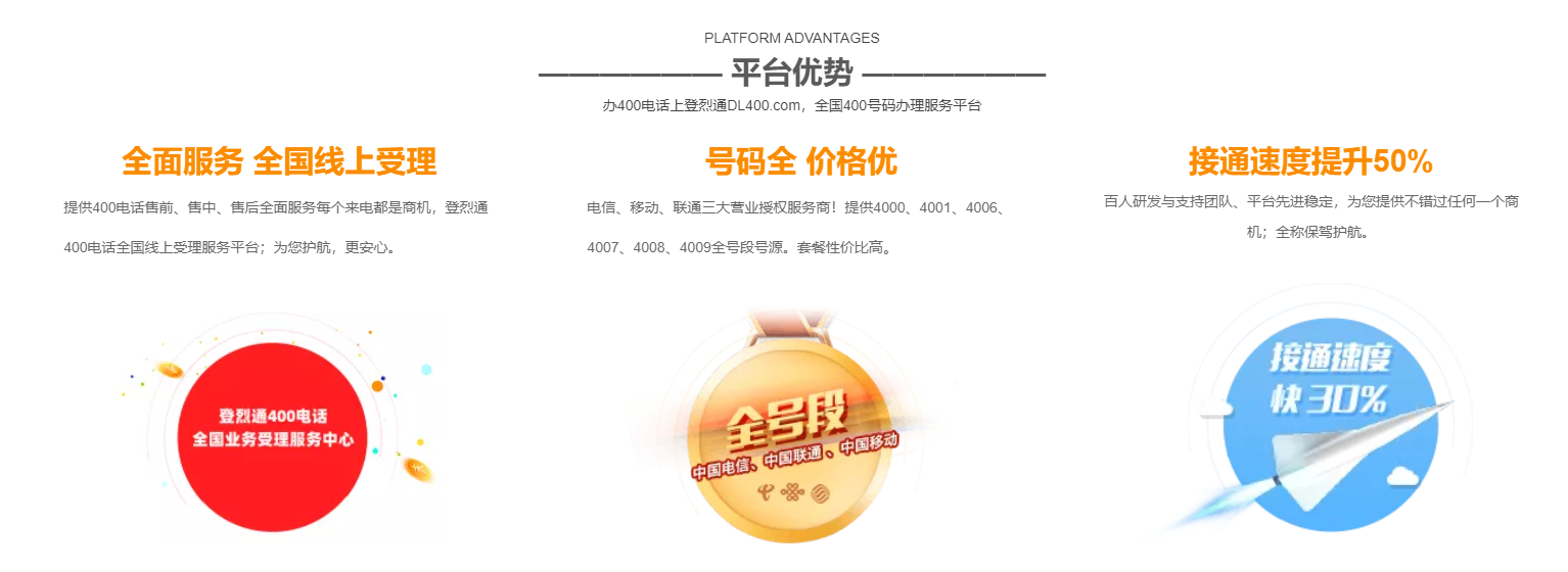 优势:登烈通作为登烈企服旗下的专业400电话办理产品,可能提供丰富的号码资源、灵活的套餐选择、高效的办理流程以及优质的售后服务。具体优势需根据实际产品情况核实。